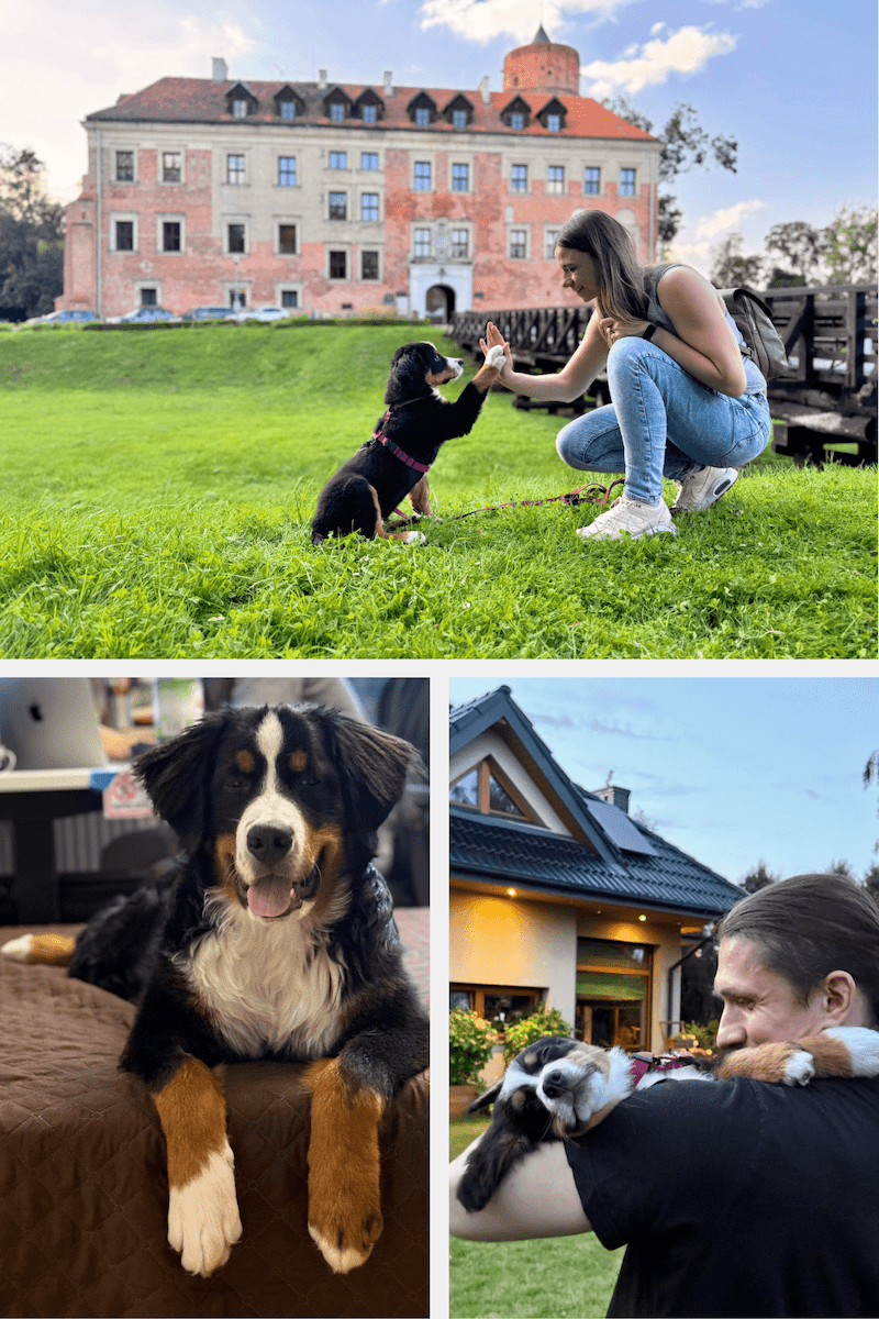 W tym wszystkim pojawił się on – nasz berneński pies pasterski, Kamilek. Wiecznie uśmiechnięty, spokojny i pełen wdzięku futrzak, który przypomniał nam, że radość często kryje się w małych, codziennych momentach. To właśnie od niego zaczęły się nasze pierwsze psie wydruki i to on stał się futrzastym patronem marki.