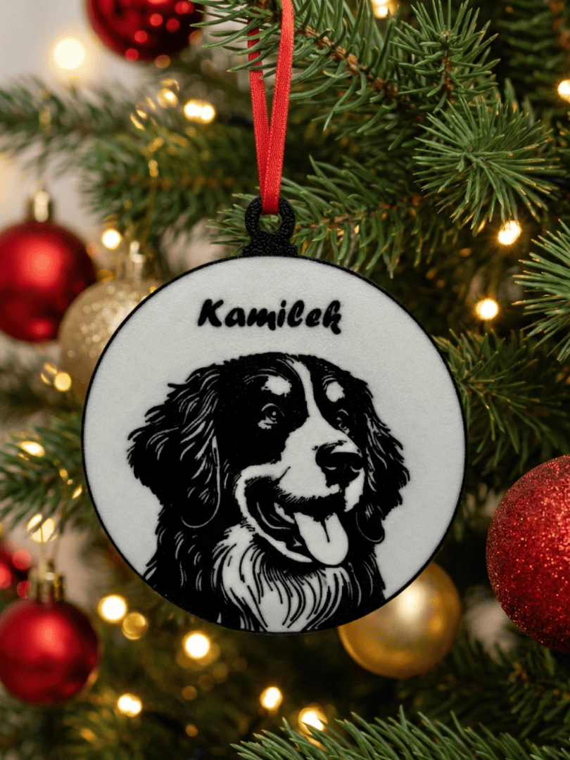 🎄 Wyjątkowa świąteczna ozdoba z Berneńczykiem – personalizowana zawieszka na choinkę!