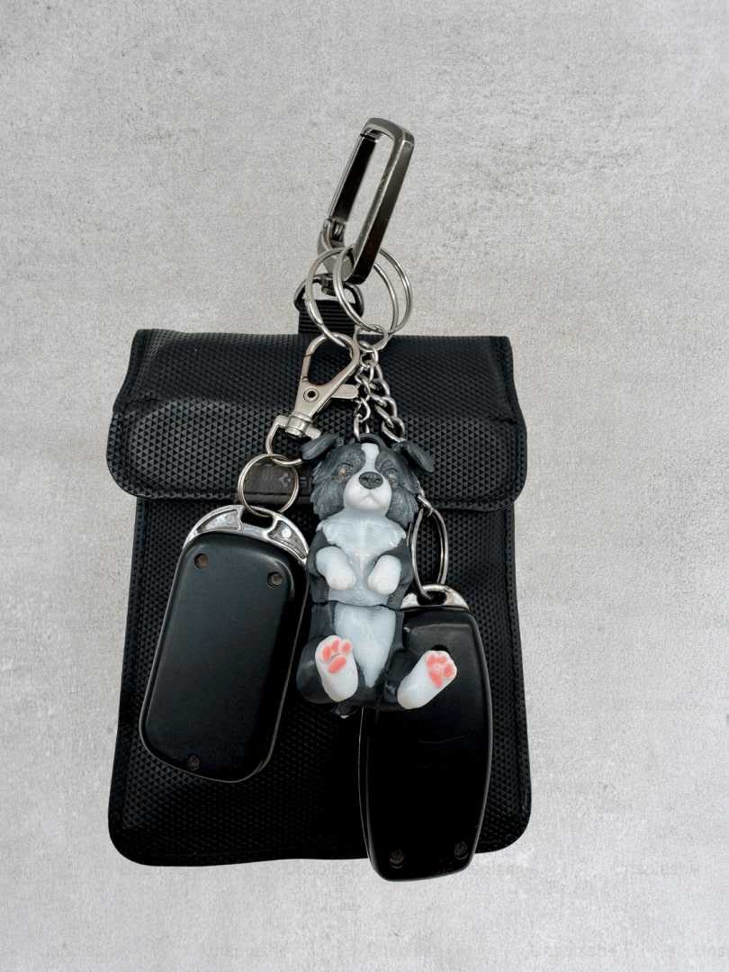 Ten słodki piesek siedzący z wyciągniętymi łapkami to brelok, który świetnie oddaje charakter tej wyjątkowej rasy — bystry, wierny i zawsze gotowy do działania.