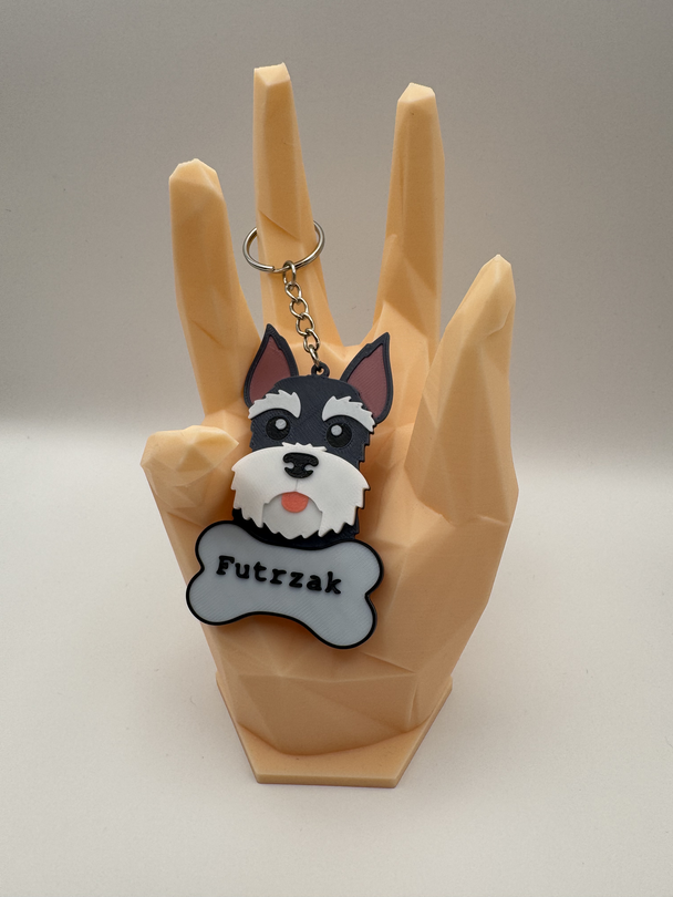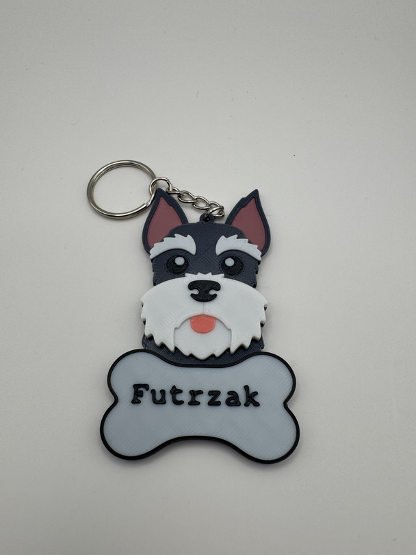 Wzór: Piesek Sznaucer + kostka z napisem (druk 3D)