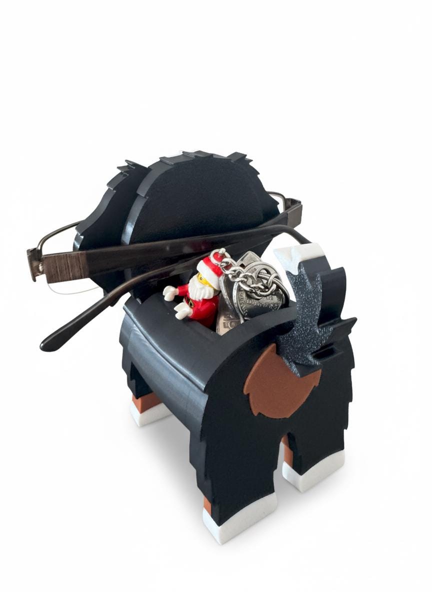 Nasz uroczy stojak, inspirowany majestatycznym Berneńskim Psem Pasterskim, to idealne połączenie funkcjonalności i wyjątkowego designu. To nie tylko praktyczny organizer na okulary, ale także piękna dekoracja, która wniesie odrobinę ciepła i uroku na Twoje biurko, szafkę nocną czy komodę.